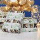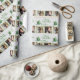 Christmas wrapping paper with two photo templates. Light grey with green text, green frames for the photos, and green tree ornament with ribbon. Upload two photos which will be patterned over the paper to create rows of pictures. The greeting is “Merry Christmas” and is easy to change to your preference. A fun way to wrap presents, in quality wrapping paper, for friends and family.