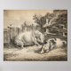 This design features an etching with an aquatint and grey wash by English artist George Morland (1763–1804). It shows two pigs sleeping in straw. It is a beautiful scene of countryside life. Depending on how the image is cropped to create a perfect fit for this particular item, you may be spot the initials G.M. on one of the fence posts. You may also be able to spot a particularly audacious bird standing proud atop another fence post.