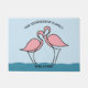 Two Pink Flamingos Family Name Welcome Doormat. Personalize this template with your family name, business name, or quote. Change the artwork. Edit it for more changes.