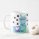 Two pretty Llama ladies – one pink and one sea green, both decked out in jewellery and glasses and ready for the day! Customized with your name on the front and back of the mug. Make it uniquely yours – just click “personalize” and add your information. Great gift for co-workers, family, and friends!