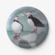 Two Puffins Design Paper Party Plates with customizable  personalization or other text.