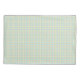 "Two rectangular placemats with a pastel plaid pattern in green, blue, and white. Placemats are shown from both the front and back."
