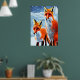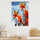 Two cute and adorable foxes outside in the snow one winter day. This is a AI generated art.