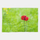 Two red tulips against the green background and some yellow wildflowers. Textured photography.