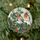 Two robins on a fence in the snow ceramic ornament
