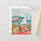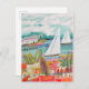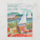 Two Sailboats and Cottage II by Karen Fields. Features two sailboats floating in the water surrounded by colourful flowers and cottages.
