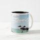 Two seagulls sitting on a dead tree sticking out Two-Tone coffee mug