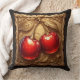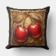 Two Shiny Red Cherries with Golden Leaves Throw Pillow