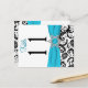 This double-sided aqua blue, white and black floral damask table number postcard with FAUX ribbon and Star of David brooch matches the Bat Mitzvah invitation shown below. **You must change the number 11 to each of the table numbers you need, add it to your cart, and then return and repeat the process until you have all the individually numbered cards that you need in your cart. Stand it on a small easel, or in your centerpieces. If you need assistance, email niteowlstudio@gmail.com.