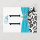 Two-sided Aqua, Black, White Damask Table Number Postcard