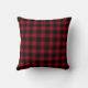 Two-Sided Festive Chequered Christmas Holiday Dark Red, White, Green & Brass Plaid Home Decor Throw Pillow. Back Of Pillow Features A Simple Red & Black Chequered Plaid Pattern.
