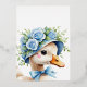 the story of a joyful milestone— very first birthday, a celebration wrapped in love, warmth, and a touch of whimsy. The design centres around a charming goose, lovingly illustrated as if plucked from the pages of a beloved children’s book. He’s not just any goose—He’s “one silly goose,” dressed for a party in a striped hat and floral crown, proudly clutching a Blue balloon. His expression is wide-eyed, innocent, and full of personality—just like a two-year-old discovering the world.