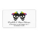 Two skull brides lesbian wedding label, featuring the skulls of two brideswith bows in rainbow colours on white background.