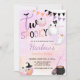 A not so spooky halloween party! Pastel pink Two Spooky Ghost Halloween 2nd Birthday invitation with black and white stripe background.