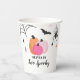 Two Spooky Halloween birthday paper cups with pink pumpkins.