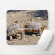 Two African Spurred Tortoises or sulcata tortoises (Centrochelys sulcata) seen from profile and walking on ground