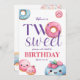 Celebrate your little one's 2nd birthday in style with our Two Sweet Doughnut Birthday Invitation! This adorable invite is perfect for your cute baby girl's doughnut-themed party. Featuring a colourful, sprinkle-filled design, the pink and sweet invitation will surely make your guests smile. Join us for a day filled with sugary fun, as we celebrate this sweet milestone together!