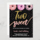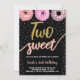 Two Sweet Gold Black Doughnut Birthday Invitations