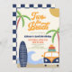 Two The Beach Surf Blue Retro 2nd Birthday Party Invitation