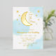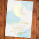 Two the moon! 2nd birthday with gold moon and stars with blue watercolor background