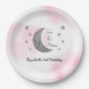 Two the moon! 2nd birthday with silver moon and stars with pink watercolor background