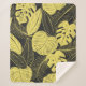 Two Tone Yellow Black Tropical Leaf Seamless Patte Sherpa Blanket