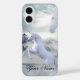 Beautiful picture of a prancing unicorn with the head of an other unicorn in the clouds, is featured on this Apple iPhone 16 case. Customize it by adding a name or text of your choice. Impact resistant, durable hard plastic case. Printed in the USA. Use this good looking case yourself, also makes a great gift too!