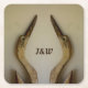 Two Weathered wooden herons are facing each other with your personalized Initials between them on these coastal coasters in neutral beige and tan colours. The design is based on an actual aged wood carving of a seabird. Personalize with a set of initials.