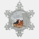 Two adorable Pembroke Welsh Corgis in the snow pewter snowflake ornament. Perfect for the winter holidays. Designed by http://www.zazzle.com/corgigifts/