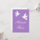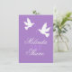 Double-sided simple 2 white love bird / doves with purple ribbons wedding RSVP. Customise with your own details.