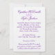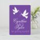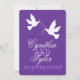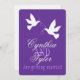 Two white love birds purple wedding invite
