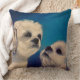 Two white Maltese cute puppies painting artwork by Zina Stromberg on Pillows.