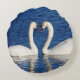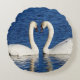 Two White Swans Form Heart Sign Round Pillow