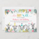 This cute birthday invitation features watercolor safari animals with faux gold foil laves and confetti.