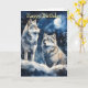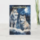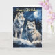 Two wolves in winter with snow, stars and moon. Suitable for a birthday for anyone
