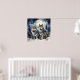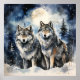 Two wolves in winter with snow, stars and moon