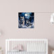 Two wolves in winter with snow, stars and moon