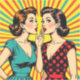 Two comic style women telling each ohter secrets! Call soon! Pop art comic book style friends.