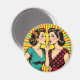 Pop art magnet. Two comic style women telling each ohter secrets! Pop art comic book style friends.