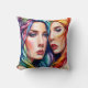 Two Women With Colourful Hair and Bold Expressions Throw Pillow