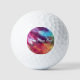A 3 pack of Value Golf Balls, With a Picture of a Tye Dye Design, = (Tye Dye#10) = (Art By P.J.M.), = Colours=Maroon, Dark Purple, Pink, Light Blue, Orange, Yellow, Green, White
