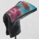 A Putter Cover, With a Black, Colour, Piping, With a Picture of a Tye Dye Design, = (Tye Dye #2), = (Art by P.J.M.) Colours= Pink, Turquoise, Yellow, Dark Purple white.