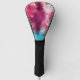 A Golf Head Cover, (Driver), With Black, Colour, Piping, and a Picture of a Tye Dye Design, = (Tye Dye#9) = (Art by P.J.M.), Colours=Pink, Maroon, Dark Purple, White, Light Blue, Yellow