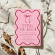The "She's Tying the Knot" theme is perfectly encapsulated in the intricate details and thoughtful design elements, making this invitation not only a piece of communication but also a keepsake that guests will cherish. The combination of the soft pink background and bold red accents creates a harmonious balance, adding to the invitation's unique and sophisticated style.
