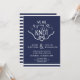 We are tying the knot! A trendy and fun version of the classic nautical wedding design in navy blue with white text and details, like a heart-shaped knot.