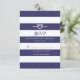 This striped response card features a white loosely tied knot in the shape of a heart. Background colour and text fields can be customized to your liking.