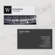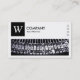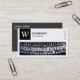 A business card template with a long rectangular image/photo area with a close-up photo of typewriter type leavers which alternatively can be replaced with your own image or photo and with a panel in the top left for a monogram or logo which includes a "W" as an example monogram which can also be changed. The design is balanced with four small rectangular text based symbols on the right created with the Semaphore symbol font. The white area is also a frame mask making it easy to position and resize a photo underneath. Company name and business type/quote on the front with name and contact details on the back in white on a contrasting dark grey background. Can be adapted to a variety of businesses and other uses.