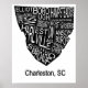Typographic Map of Charleston Negative Poster