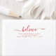 Croyez - Moderne et élégant blanc et rouge Script à la main écriture typographie Joyeux Noël Carte Invitation Retourner Adresse Label qui est idéal pour une carte de vacances de Noël ou Happy Holidays Invitation. Le texte de ce étiquette de typographie de script moderne écrit à la main peut être mis à jour et customisé avec votre nom et adresse