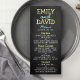 Cartes de menu Mariage modernes de typographie de tableau noir. Ajoutez votre libellé personnalisé à cette conception à l'aide des cases "Modifier ce modèle de conception" situées à droite de l'élément, ou cliquez sur le bouton bleu "Customiser" pour arranger le texte, modifier les polices et les couleurs et ajouter des informations ou des images supplémentaires à cette conception.